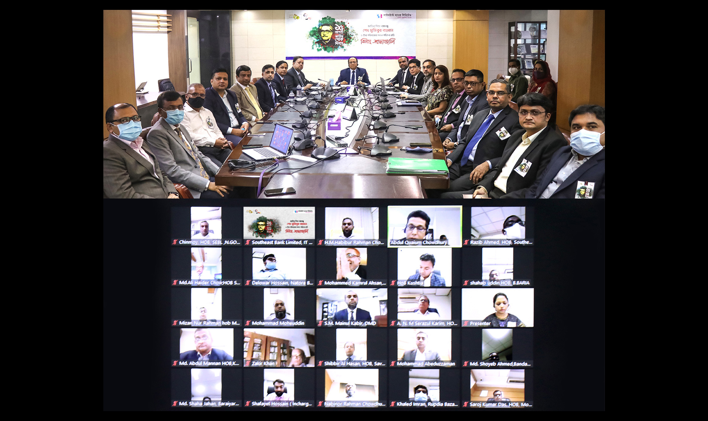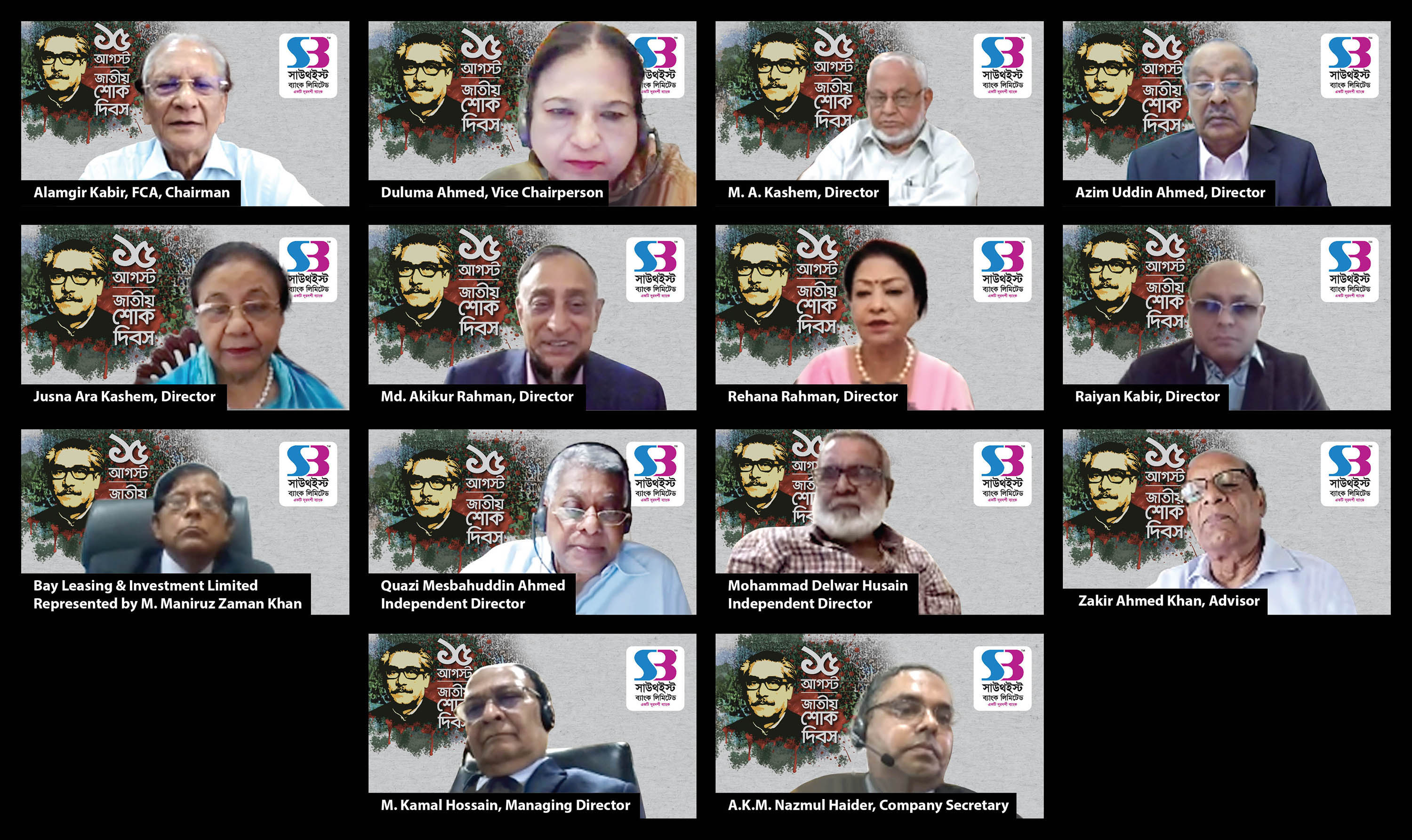 স্বাধীনতার মহান স্থপতি জাতির পিতা বঙ্গবন্ধু শেখ মুজিবুর রহমান, বঙ্গমাতা শেখ ফজিলাতুন্নেসা মুজিবসহ ১৫ আগস্টের সকল শহিদের প্রতি শ্রদ্ধায় ও স্মরণে সাউথইস্ট ব্যাংক পিএলসি এর উদ্যোগে মাসব্যাপী বিভিন্ন কর্মসূচি পালিত হয়। এসব কর্মসূচির মধ্যে ব্যাংকের পরিচালনা পর্ষদে জাতির পিতা বঙ্গবন্ধু শেখ মুজিবুর রহমানের সংগ্রামী জীবন ও কর্মের প্রতি শ্রদ্ধা জানিয়ে ভার্চুয়াল শোক সভা অনুষ্ঠিত হয়েছে। এছাড়া জাতীয় শোক দিবস উপলক্ষ্যে বৃক্ষরোপন কর্মসূচিসহ সকল শহিদের প্রতি বিনম্র শ্রদ্ধা জানিয়ে বিভিন্ন প্রচারণামূলক কার্যক্রম পরিচালনা করা হয়।